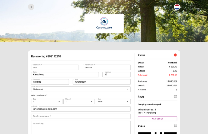 Every guest receives an online guestpage. This is a unique link that is available during his stay and before. On this guestpage the guest is able to submit all the information you need.
